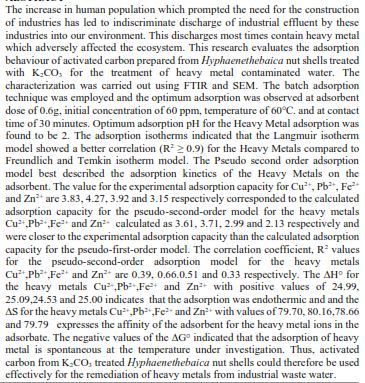 Kinetics, Thermodynamics, Isotherm, Heavy Metals, Hyphean ThebaicaAbstract