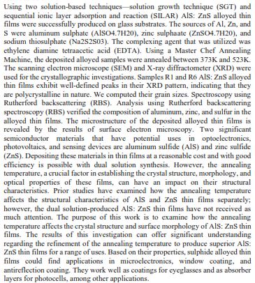 et al., A. (2024). Effect of annealing temperature on the structural properties of dual solution synthesized AlS: ZnS thin films. JOURNAL OF BASICS AND APPLIED SCIENCES RESEARCH, 2(1), 200-207. https://doi.org/10.33003/jobasr-2024-v2i1-46