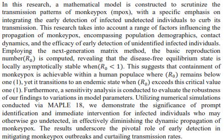 Monkeypox, Detection, Equilibrium Points, Stability, Basic Reproduction NumberAbstract