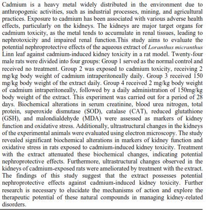 Cadmium, Kidney, Loranthus micranthus Linn, Nephroprotective, Oxidative stressAbstract