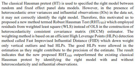 Hausman pretest, Panel data, HeteroscedasticityAbstract