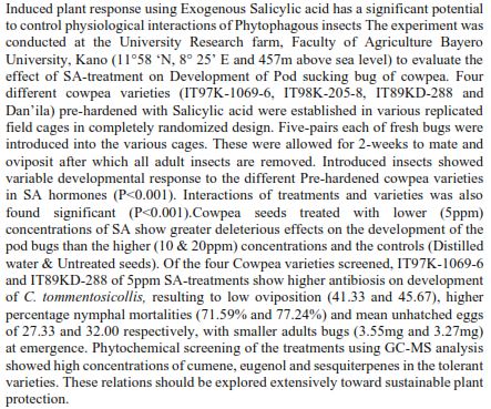 Cowpea varieties, Salicylic acid, C. tomentosicollis, Control, PhytochemicalsAbstract